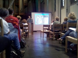 My church-a-day foray definitely heated up this week. Professor Carr quoted the great American poet Audre Lorde to go beyond physical love. “Love — more than sexual love — may be queerest of all.”