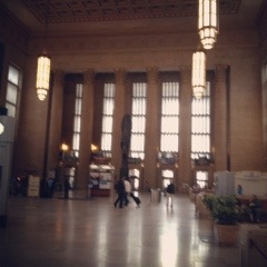 Unlike airports, which are made of glass, steel, sterility, full of uniformed personnel intent on efficiency and safety, train stations are grand dames, made of marble, wood, vast ceilings, wasted space, meandering Art Deco design, and welcome to all kinds of wandering characters.