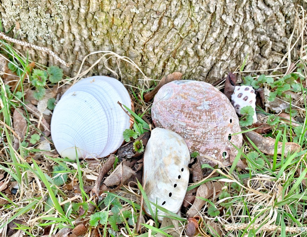 Feeling rooted in a particular place, I find comfort. A local artist here in the Adirondacks left seashells around town. I’m always seeing them as I walk the dog. It feels like such a gift — to come upon a seashell in the countryside. Like life is one big Easter Egg hunt.