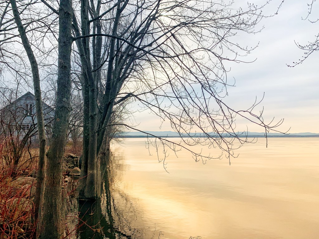 Getting out of your home comfort zone and into nature, even in the winter weather, refreshes your soul. During the week between Christmas and New Year’s Day, my family went up to Westport on Lake Champlain. We took a couple of long walks on Camp Dudley Road. Nothing makes you feel so alive as a brisk winter walk. Breathe. Feel the bracing fresh air and notice the big sky.