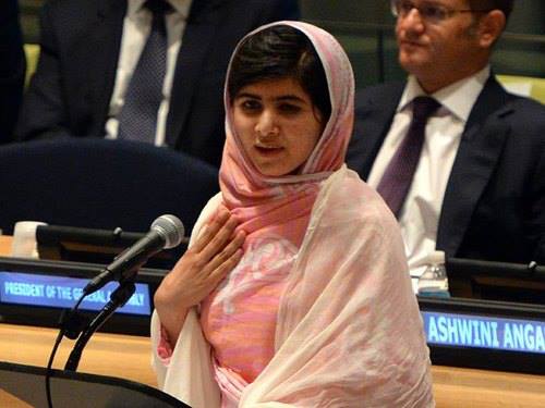 After being shot by the Taliban, on 16th birthday, Malala Yousafzai spoke at the United Nations. (photo courtesy of Charter for Compassion)