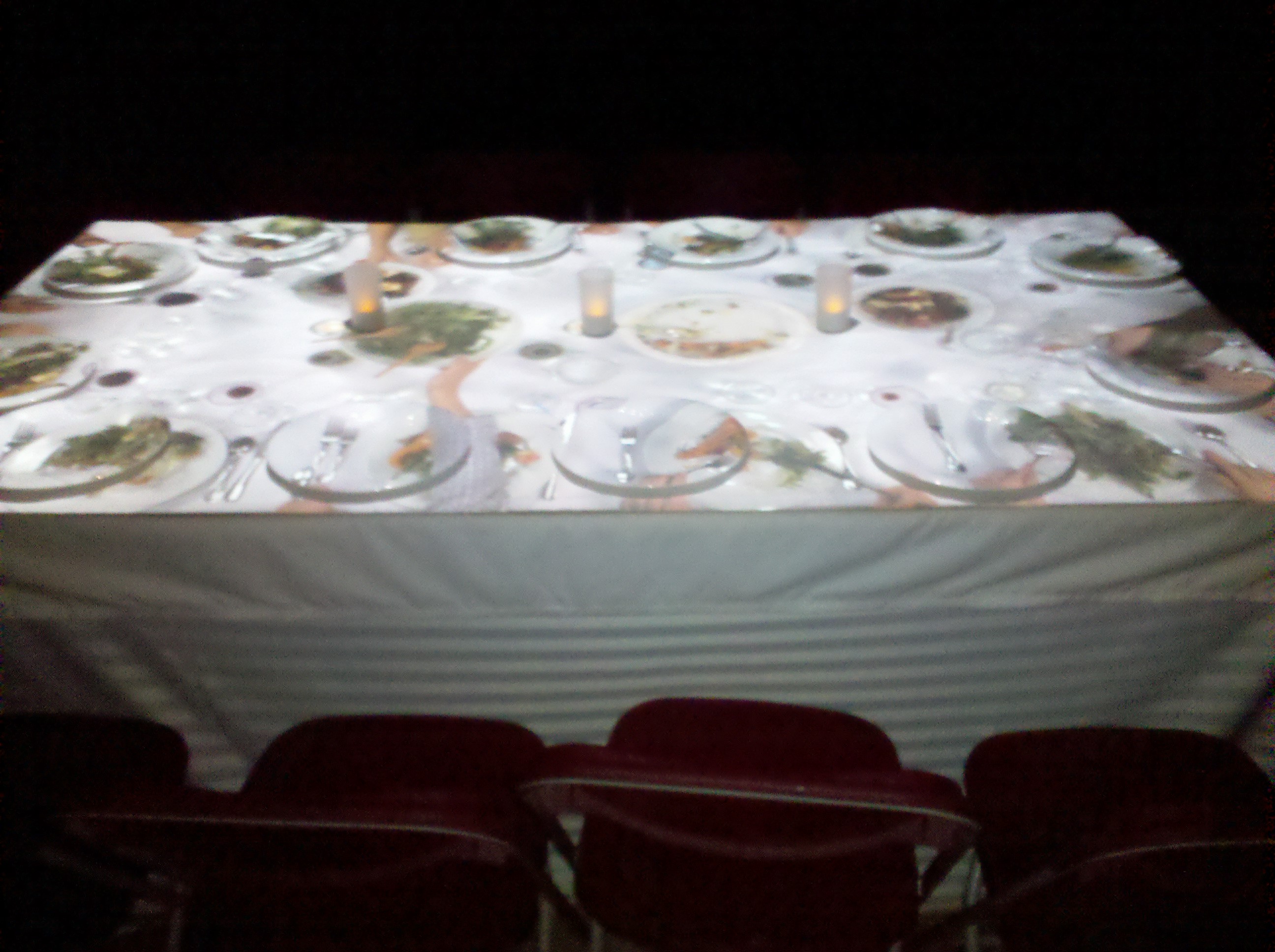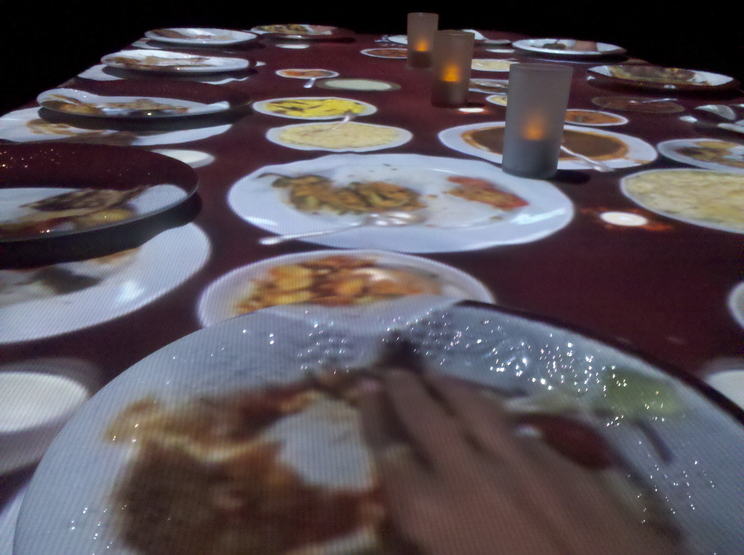 So I sat. And pretty quickly noticed that the meal shifted and floated in front of me. The meal on my plate was just a projection on the table.