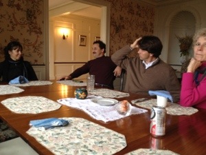 Special thanks for catering to Carolyn Ware at Ernie’s for lunches of sandwiches and chili; to David and Cynthia Johnston at DaCy Meadow Farm for a quiche brunch; to Janice Hainer at Everybody’s for the groceries; to Jim and Jayne Vance at Westport Hotel and Tavern for our cozy first night’s dinner together; and to Dogwood Bakery for the artisan pizza. We’re lucky to have such tasty options. The writers loved the local foods!